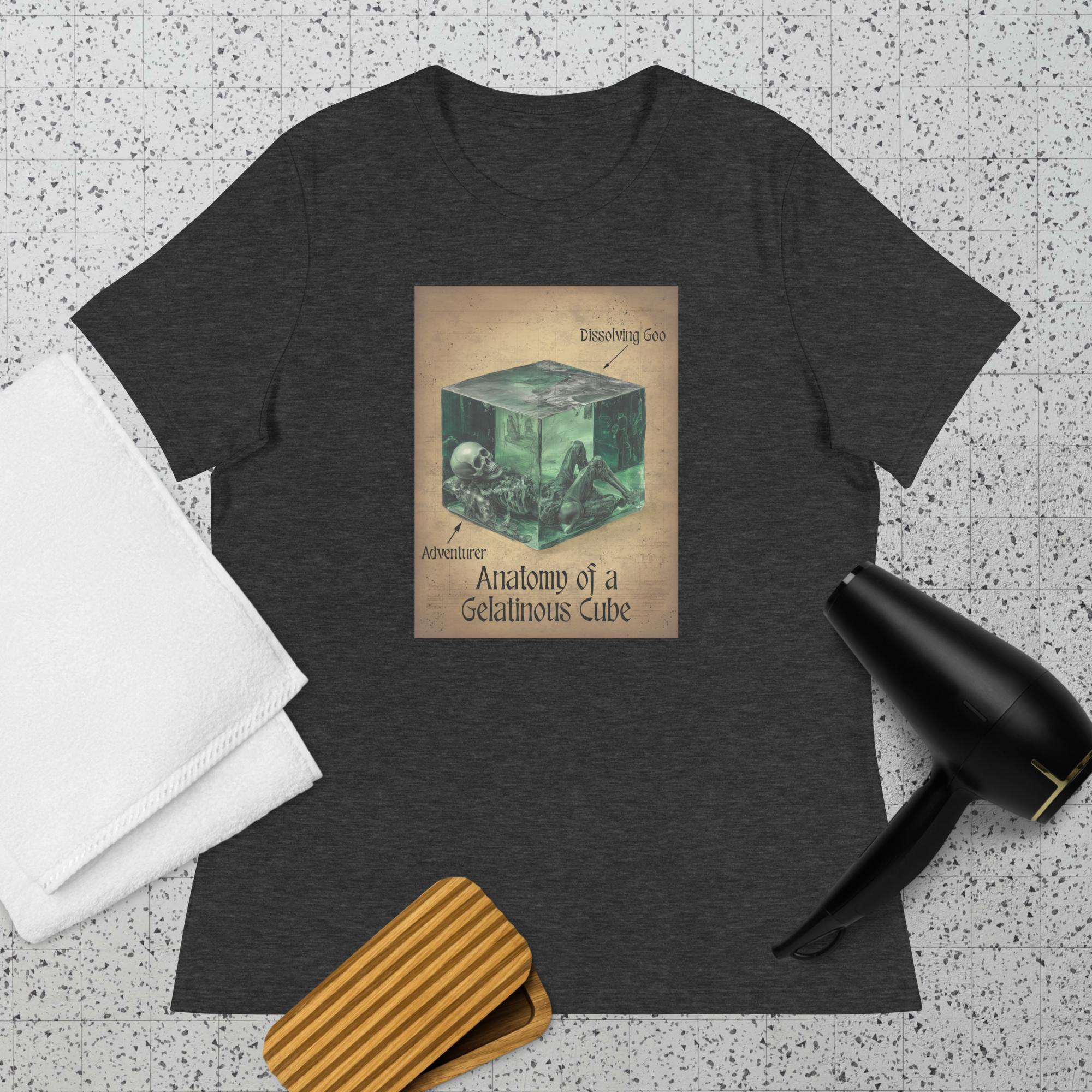 Made exclusively for the 2025 San Diego Comic Con, this t-shirt commemorates the FGGGbT Panel “Anatomy of a Gelatinous Cube”. This lightweight and form-fitting t-shirt is the perfect addition to any role-playing night!