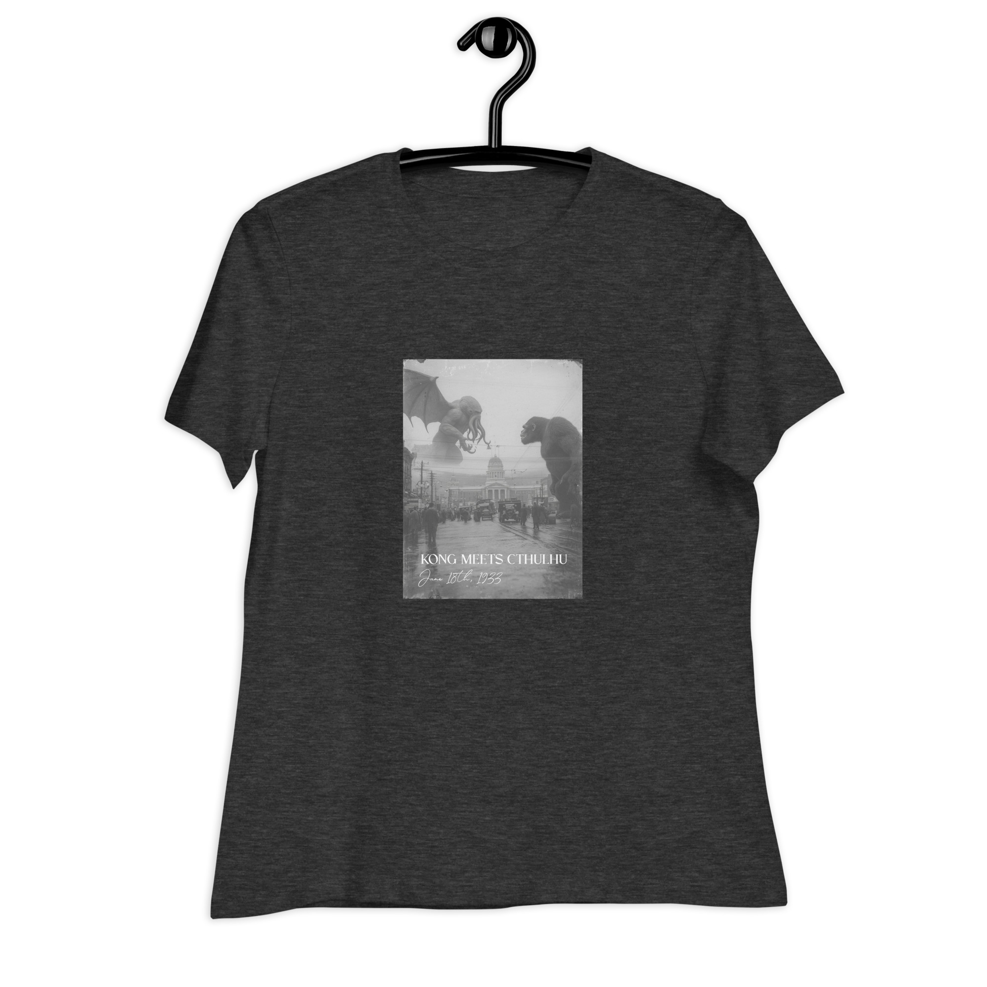 This time when Cthulhu came back, we were ready for him! The moment King Kong first laid eyes on the tentacled monster from the deep he knew he was fighting for everything on the planet. The photographer of this iconic standoff is lost to history, but luckily this t-shirt isn’t!
